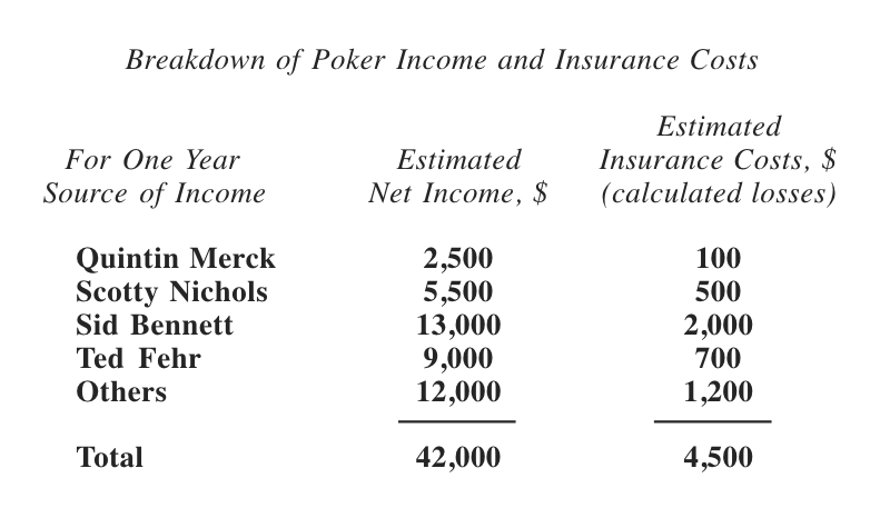 John Finn spends some of his winnings to hold big losers like Sid Bennett and Ted Fehr in the game. The following data from John’s records indicate that his insurance costs are profitable investments.